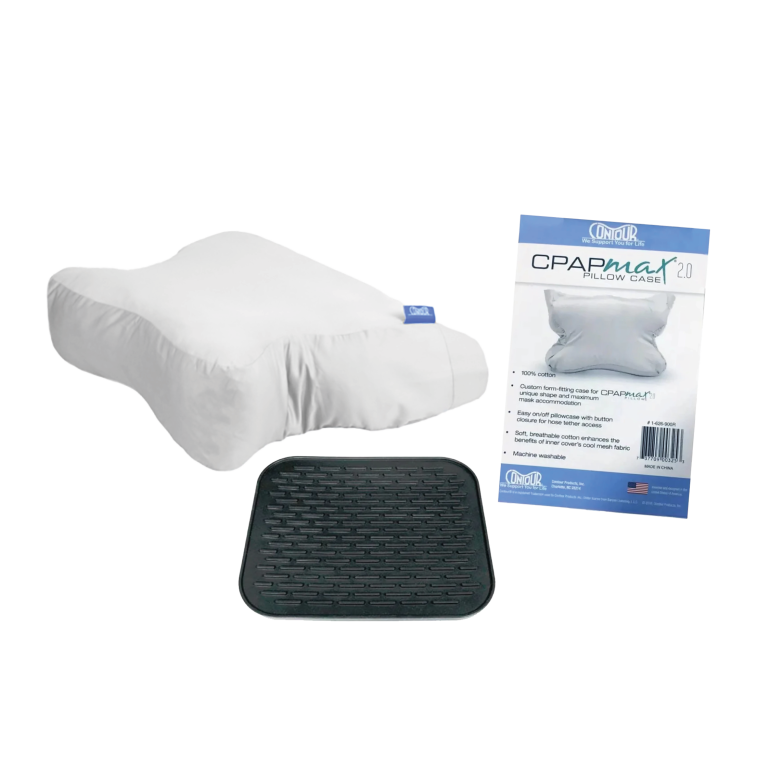 For a limited time, purchase a CPAP pillow and pillowcase and receive a free CPAP mat—all in one convenient bundle!